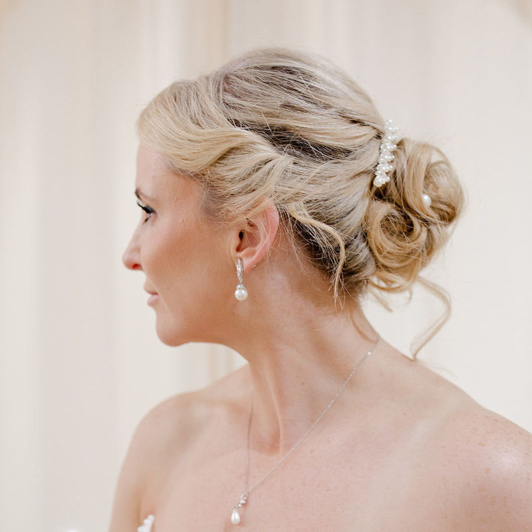 A delicate row of pearls and crystals, the Seraph Comb adds a touch of celestial grace to your bridal look. Perfect for tucking into updos or securing a veil with subtle shimmer.